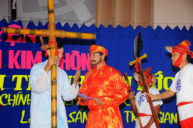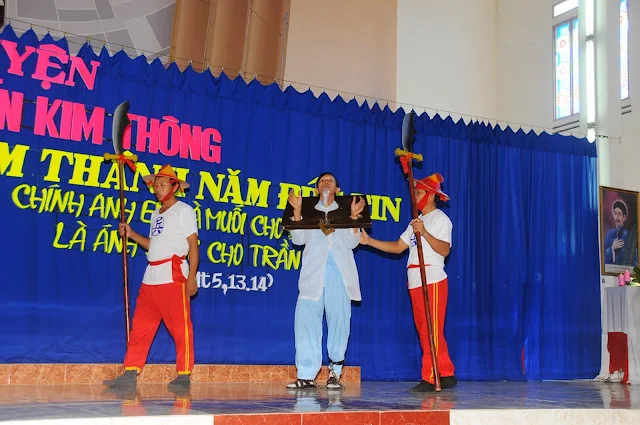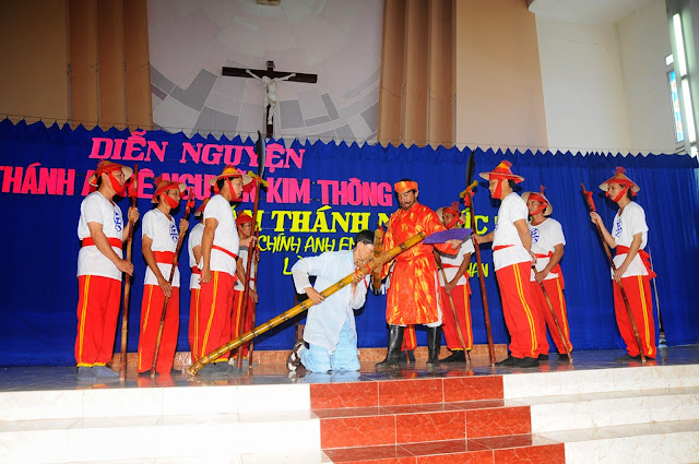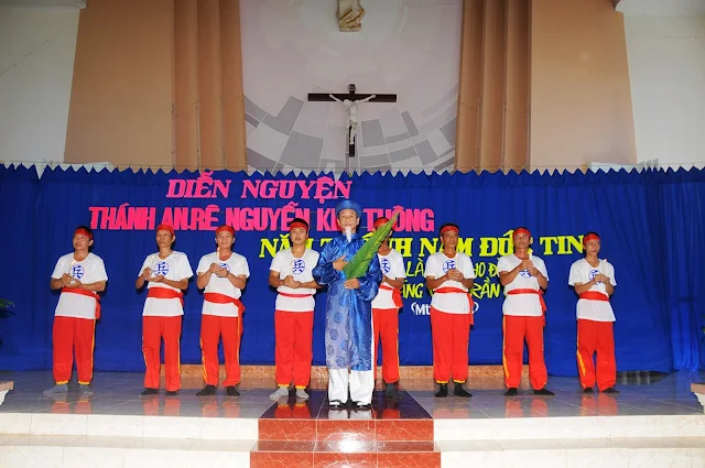 Trong tâm tình uống nước nhớ nguồn, trước thánh lễ, giáo xứ đã tổ chức chương trình diễn nguyện với nội dung ngắn gọn và súc tích. Mở đầu bằng những vũ khúc ngợi ca của các em thanh thiếu niên. Cao điểm của chương trình này là diễn lại cuộc đời nhân chứng và hành trình tử đạo của ông trùm cả Anrê Kim Thông.