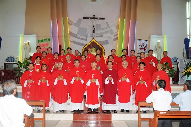 Sáng nay 15/07/2013 tại nhà thờ giáo xứ Gò thị, cộng đoàn dân Chúa trong giáo phận đã hân hoan mừng lễ kính thánh trùm cả Anrê Nguyễn Kim Thông, bổn mạng các chức việc. Thánh lễ hôm nay cũng được lồng trong khuôn khổ của ngày cử hành Năm Đức Tin dành cho các chức việc, những người phục vụ nhà Chúa.