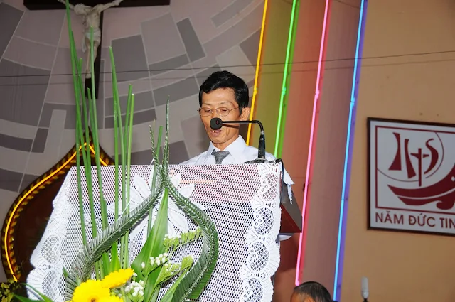 Trong phần chia sẻ Lời Chúa, cha Giuse Võ Tá Hoàng đã trình bày cho thấy phần lớn cuộc đời của thánh Anrê Kim Thông như đã đi lại bước chân của Thầy Giêsu chí thánh. Thánh nhân đã dâng hiến trọn vẹn đời sống mình cho Chúa, chấp nhận để cho thân xác bị tiêu hao vì Tin mừng để đạt được cuộc sống mới nơi Thiên Chúa là chủ tể mọi sự. Niềm tin vào Thiên Chúa và việc tử đạo của thánh Anrê Kim Thông là hành động minh chứng cho sự thật, minh chứng cho tình yêu khắn khít vào Thiên Chúa, một tình yêu vượt qua mọi gian truân khốn khổ, đói khát, trần truồng, hiểm nguy, bắt bớ, gươm giáo và cuối cùng là cái chết, để giữ mãi hơi thở thần linh đã lãnh nhận, để đạt được sự sống trường tồn, bất diệt nơi Thiên Chúa suối nguồn của sự sống. (xem thêm)