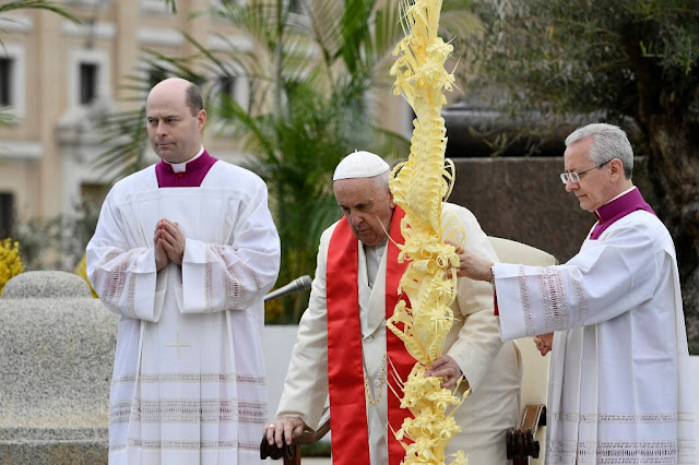 Văn phòng Cử hành các Nghi thức Phụng vụ của Giáo hoàng cũng chịu trách nhiệm phân phát những cành ô liu hôm Chúa nhật tuần trước, chủ yếu được mang đến từ San Remo, và những cây ô liu lớn hơn do công ty trồng hoa Flora Olanda mang đến được đặt gần tượng các Thánh Phêrô và Phaolô bên cạnh các bậc cấp dẫn đến Vương cung thánh đường qua đài kỷ niệm nổi tiếng của Quảng trường.